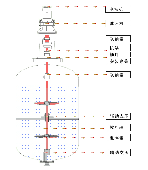 搅拌大致有以下几种,在每一个搅拌过程它们都同时存在,在生产中根据实际需要来控制搅拌形式以达到最主要的搅拌目的。